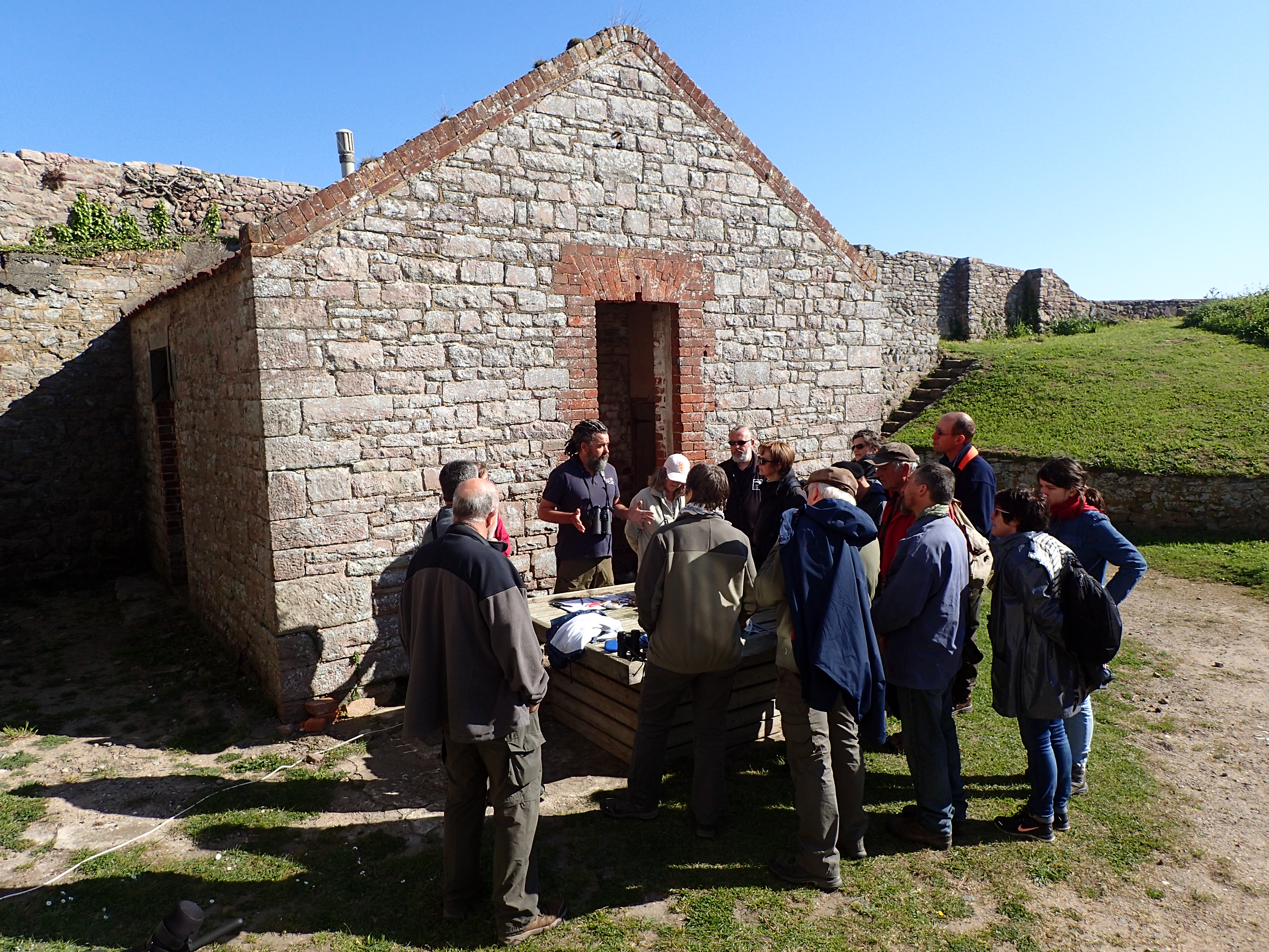 Today the 9th April and Mark Atkinson reported a Ring Ouzel at Rose farm. There were 2 Wheatears at Sur la Ville and another at Tourgis. A group of a dozen day tripping French birders visited the bird observatory where they observed some bird ringing before hearing a talk about our bird observatory and field centre project. (see photo below)